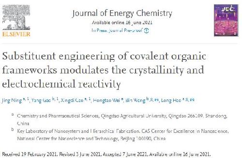 课题组与国家纳米科学中心王斌研究员、高扬博士合作发表Journal of Energy Chemistry一篇