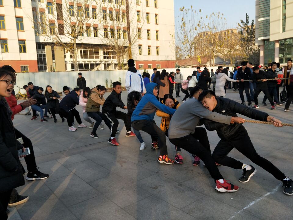 活动前期,同学们在文体馆前集合,观看由轮滑社带来的精彩轮滑竞技和文艺部表演的舞蹈歌曲。随着,比赛哨声的响起,开始了激烈的比赛角逐。第一项目是拔河比赛,各位参赛选手迅速进入指定位置,手拉赛绳,团结一心,拼尽全力展开对战,拔河的号子此起彼伏,班级拉拉队热情的为选手鼓劲加油,场面非常热烈。在“无敌风火轮”比赛过程中,各位选手小心翼翼地踩在用报纸制成的“风火轮”上步伐一致,小步快走,牵引着“风火轮”不断向前进。班里各位选手们有条不紊,顺利到达终点。最后一项是“多人多足”环节,十名选手两两将腿绑在一起,随着裁判一声令下,手挽手迈着整齐的步伐,一起奔向终点,最后取得小组第一的成绩。比赛项目结束后,经过嘉宾评比,药学二班获得了三等奖的佳绩,并由社团部部长王凯毅颁奖。