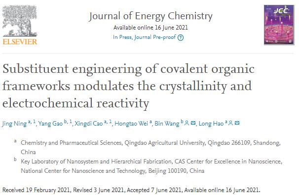 通讯作者:王斌(国家纳米科学中心),郝龙(青岛农业大学)