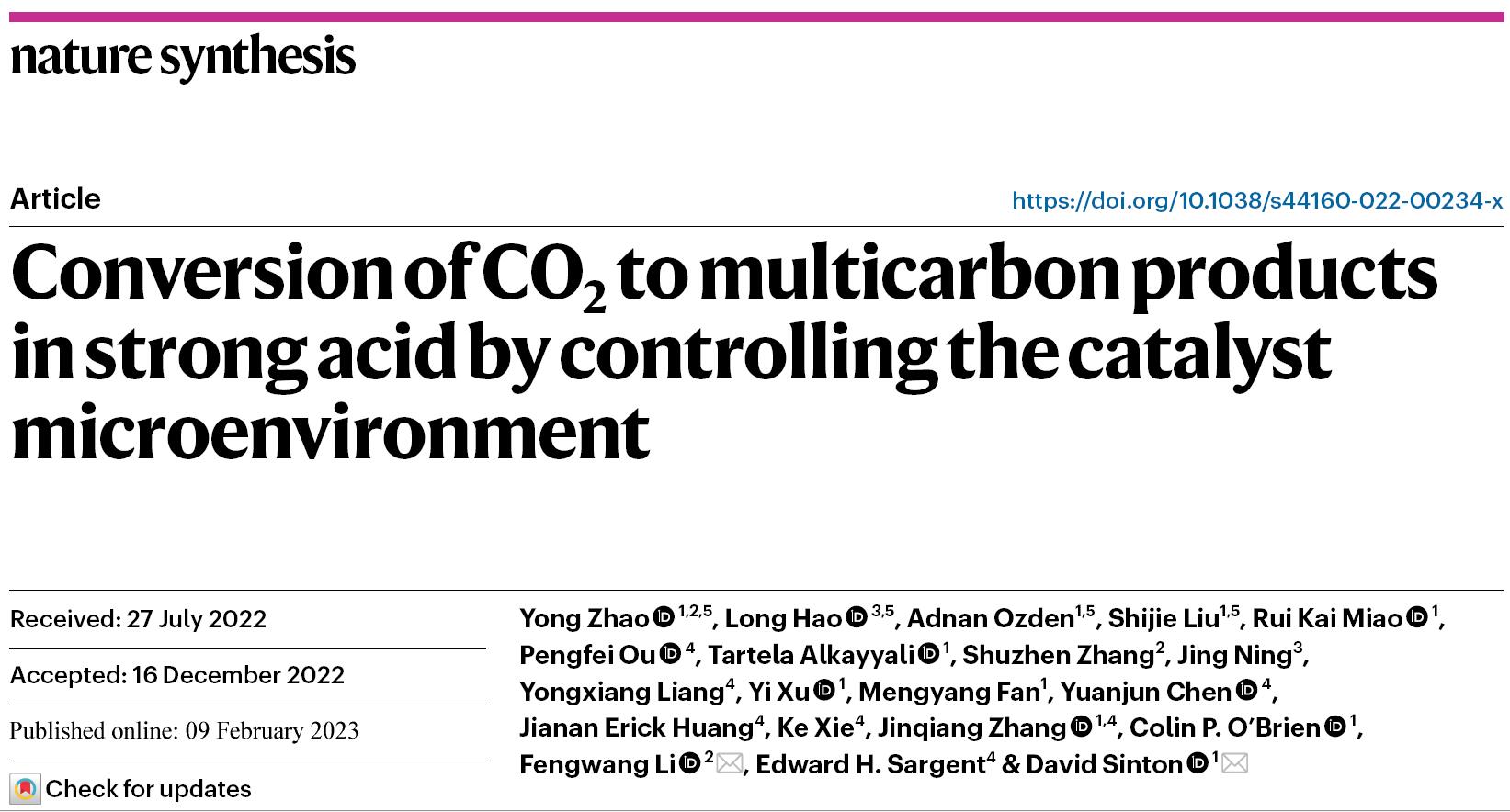 to multicarbon products in strong acid by controlling the catalyst microenvironment
