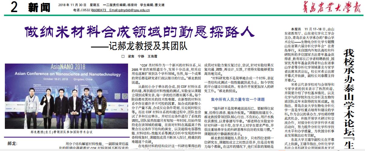 纳米功能材料课题组(课题组长:郝龙 特聘教授)