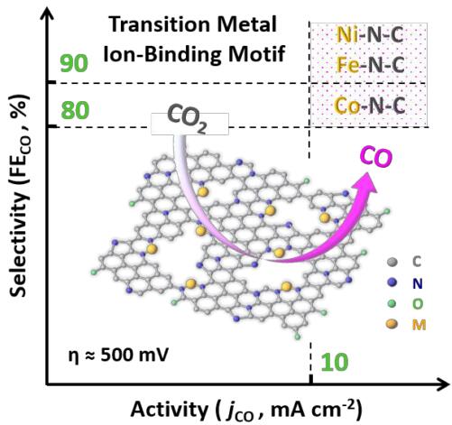 图1. COF演变的氮掺杂碳配位不同过渡金属离子用于高效CO2电化学还原