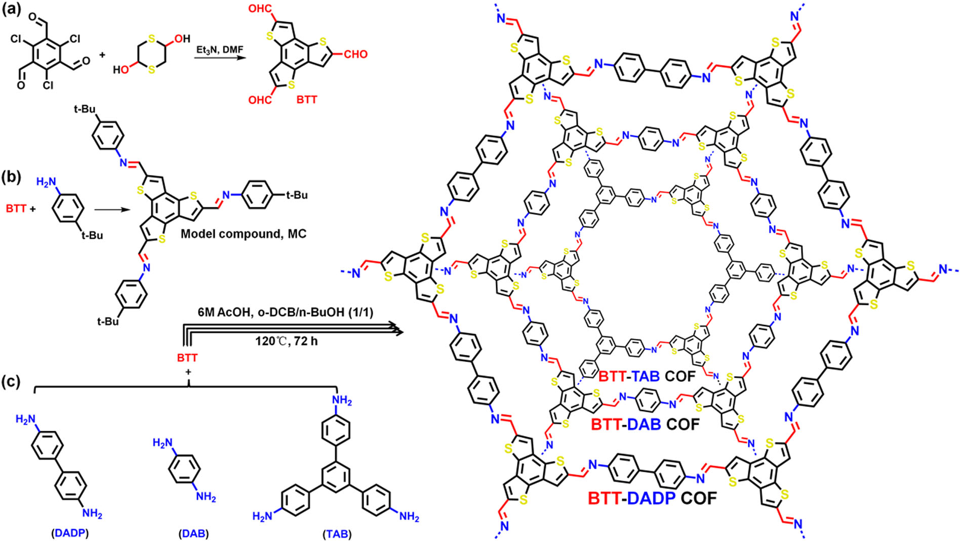 题目:Benzotrithiophene-based Covalent Organic Frameworks: Construction and Structure Transformation under Ionothermal Condition 第一作者:Hongtao Wei(魏红涛), Jing Ning(宁静), Xingdi Cao(曹兴弟) 通讯作者:Long Hao(郝龙) 单位:College of Chemistry and Pharmaceutical Sciences, Qingdao Agricultural University (青岛农业大学 天天莫天天爽学生妹) 文章网址: http://dx.doi.org/10.1021/jacs.8b08282 DOI:10.1021/jacs.8b08282 摘要:A C3-symmetric benzotrithiophene tricarbaldehyde (BTT) is synthesized for the first time with a facile method, which is used to construct BTT-based covalent organic frameworks (COFs) with different pore sizes. Meanwhile,the structure transformations of the COFs under high-temperature ionothermal condition are studied systematically, and the relationships between the regularly changed structures of the further-crosslinked COFs and their supercapacitor performances are investigated. It turns out that dealing COFs of designated structures under ionothermal condition is a great method to build high-conductive structure-controllable materials for electrochemical applications.