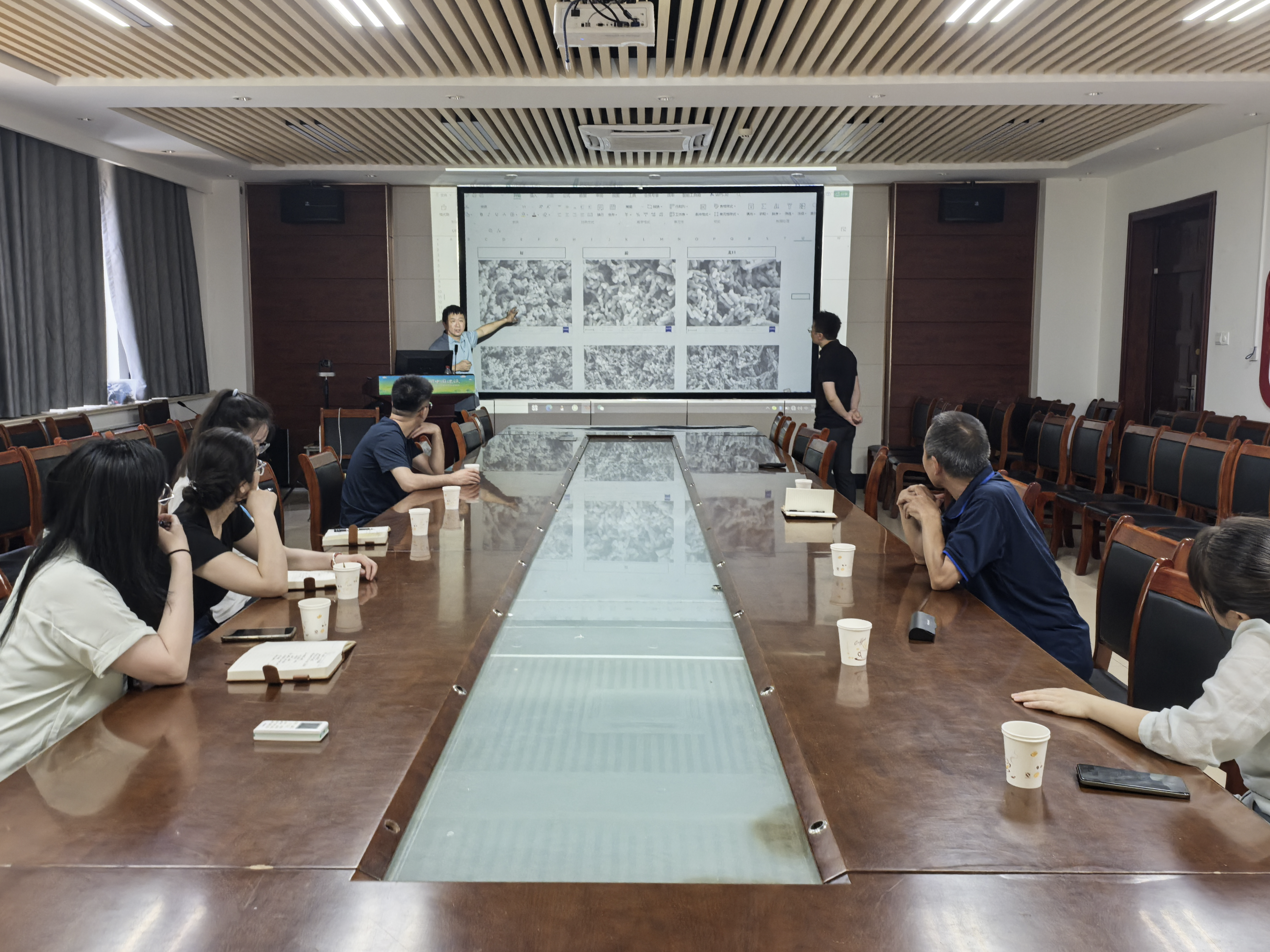 山东墨彩德新材料有限公司副总经理王锐首先介绍了公司的基本情况。他特别提到,本年度已有三名学院毕业生入职公司,并对此表示衷心感谢。 随后,王锐详细阐述了企业当前的具体人才与技术需求。 他表示,希望以此次校企合作为契机,不断深化双方协作,共同推进科教融合与产教融合目标的实现。与会人员围绕人才培养、科研合作等多个方面进行了详细的交流。