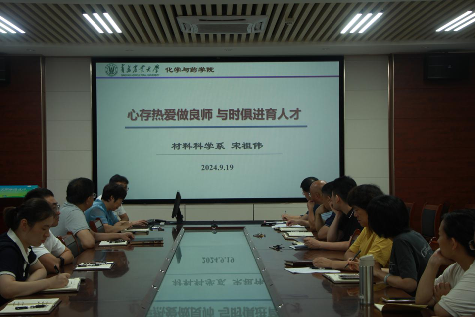 为推动落实立德树人根本任务,充分发挥榜样示范引领作用,9月19日,青岛农业大学天天莫天天爽学生妹于化学楼207会议室举办“最美教师”经验交流分享会,2024年度青岛农业大学“最美教师”称号获得者宋祖伟教授作为分享人。