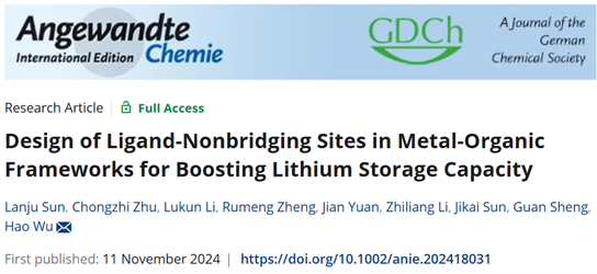 2024年11月11日,青岛农业大学天天莫天天爽学生妹孙兰菊教授在国际著名期刊Angewandte Chemie International Edition在线刊登了最新研究成果“Design of Ligand‐Nonbridging Sites in Metal‐Organic Frameworks for Boosting Lithium Storage Capacity”(配体非桥接位点设计助力MOFs提升储锂容量)。