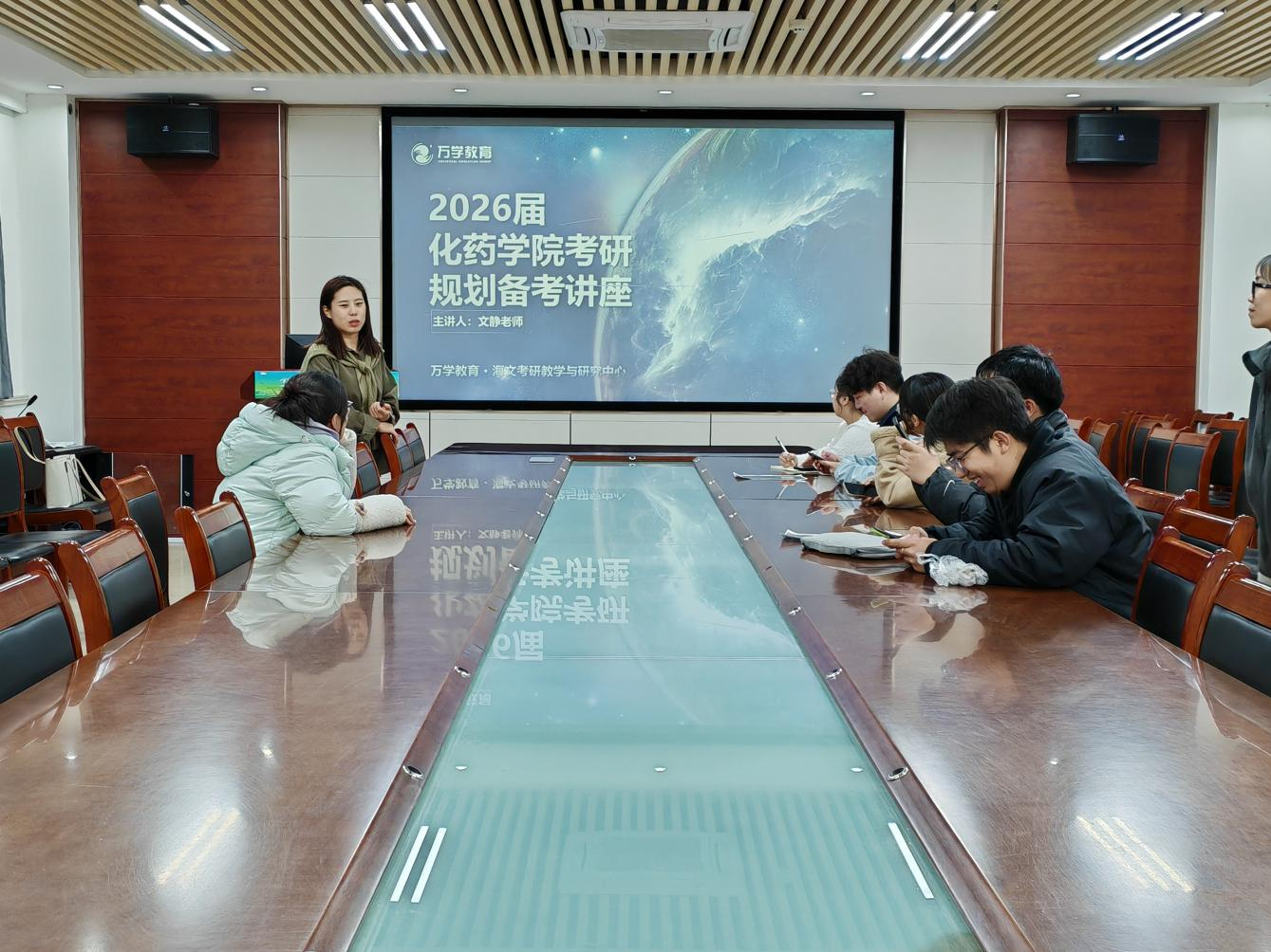 为帮助学院学生明晰考研方向,掌握科学备考方法,3月27日,青岛农业大学天天莫天天爽学生妹同万学教育在化学楼207会议室举办2026届化药学院考研规划备考讲座。本次讲座由万学教育文静老师主讲,2022级学生代表参加。