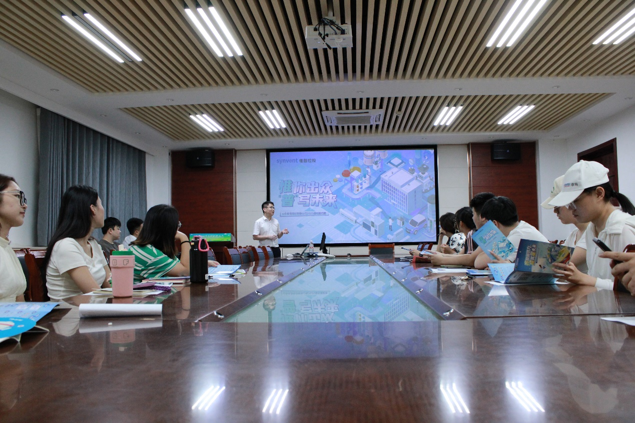 宣讲会伊始,齐成控股集团负责人杨大钊播放了企业宣传片。同时,他从四个方面详细介绍其企业文化:一是为员工提供平台,不断提高员工的工作热情与自豪感;二是为员工提供成长的机会,不断提升员工的能力;三是为员工提供丰富的薪酬福利,增加员工的收入;四是为员工提供良好的工作环境,提高员工的工作动力。随后,惟普控股公司负责人围绕“惟你出众,普写未来”主题,分别对分公司的基本情况、员工活动、岗位需求以及工作环境进行了详细而系统地介绍,让在场的学生们更加深入地了解了两家公司的运营情况。最后,公司负责人详细解读了集团的岗位需求、学历要求、专业需求以及工作地点等信息,并针对学生代表提出的问题进行了详尽的解答。