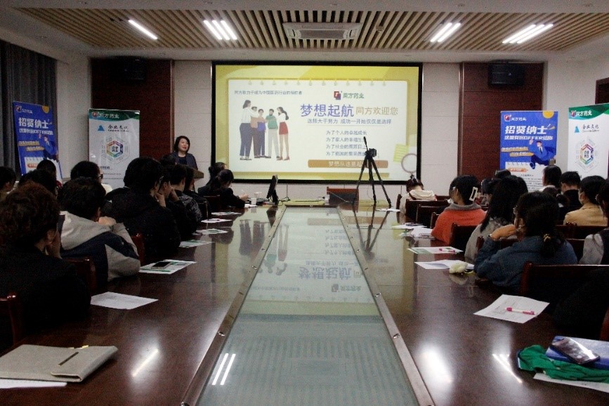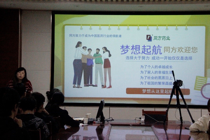 宣讲会上,团委书记赵莹首先向来参加宣讲会的同学对同方药业进行了简单介绍,动员学生要积极把握就业机会。随后,企业招聘负责人向在场同学播放了公司的视频宣传片,展示公司的发展历程和发展战略。随后以PPT的形式就公司发展历程、企业精神、福利待遇、岗位需求等方面向同学做了概括,并现场解答同学们的疑问,对投递简历的同学现场进行面试,真诚地邀请同学们进入同方药业工作。