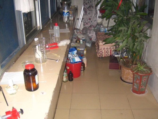 图为家里实验室药物储存区