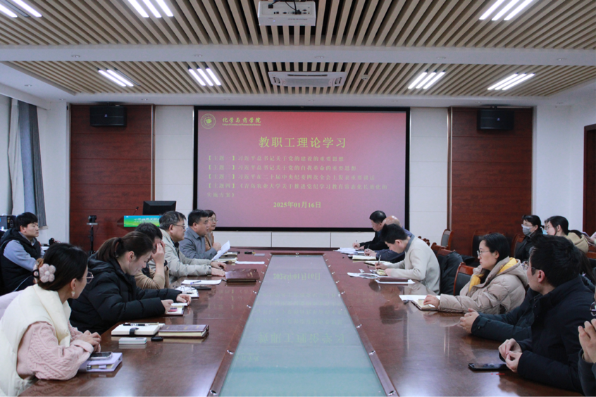 1月16日,青岛农业大学天天莫天天爽学生妹于化学楼207会议室开展教职工理论学习,会议由学院党委书记王进国主持,全体教职工参加 。