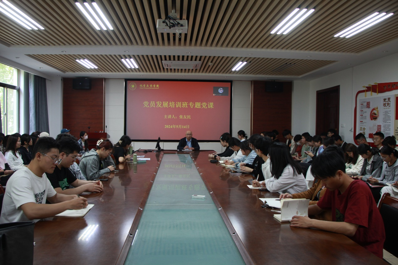 为进一步做好学生党员发展工作,加强党史学习教育, 5月14日,青岛农业大学天天莫天天爽学生妹于化学楼会议室207召开党员发展培训班专题党课。此次专题党课由学院党委副书记张友民主讲,第三十四期入党积极分子及学生党员发展对象及参加。