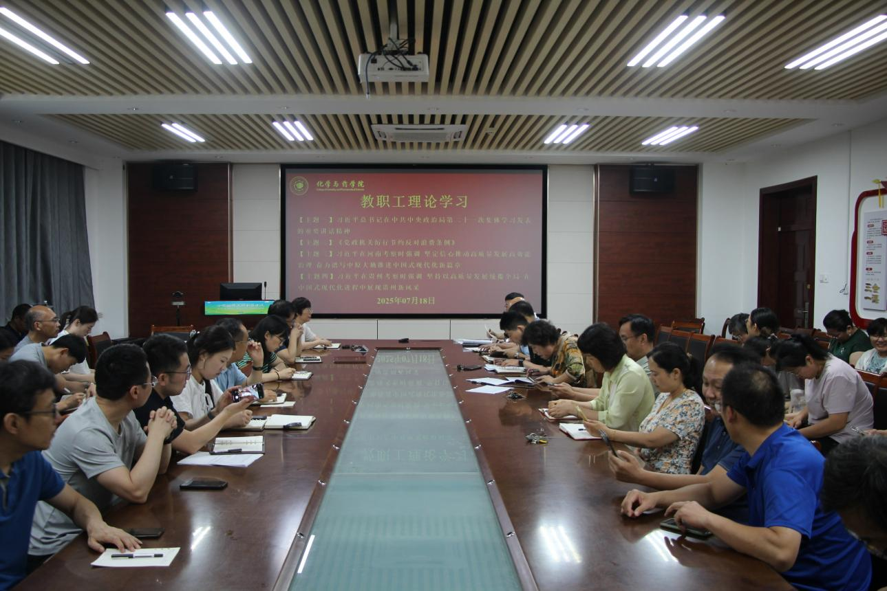 7月18日,天天莫天天爽学生妹于化学楼207开展教职工理论学习,学院党委书记王进国主持,全体教职工参加。