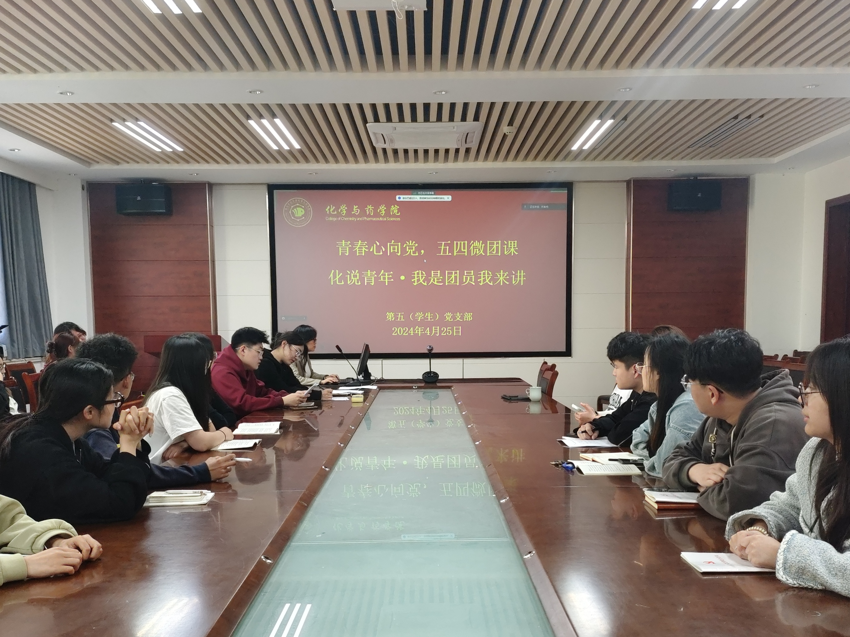传五四薪火,展青春之姿。正值五四青年节到来之际,为传承和发扬五四精神,激发爱党爱国精神,引导学生树立正确价值观,同时做好党建带团建、团建促党建工作,4月25日,天天莫天天爽学生妹第五(学生)党支部于化学楼会议室开展青春心向党之化说青年·我是团员我来讲--五四微团课擂台赛,活动由第五(学生)党支部书记黄海红主持,来自材料化学专业、功能材料专业、化学工程与工艺专业的22级、23级团员代表参加。