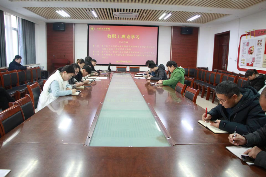 11月30日,青岛农业大学天天莫天天爽学生妹于化学楼会议室207开展教职工理论学习。会议由学院党委书记王进国主持,全体教职工参加。