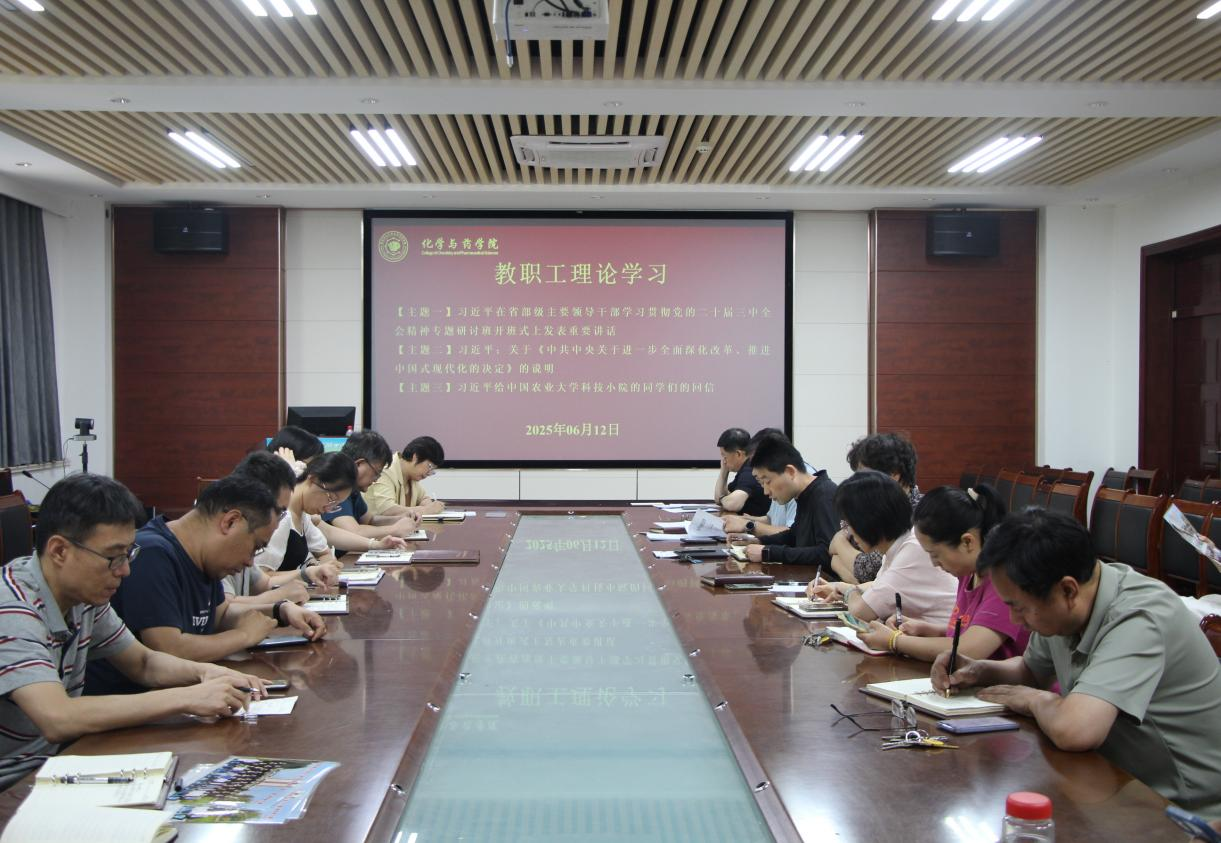 6月12日,天天莫天天爽学生妹于化学楼207开展教职工理论学习,学院党委书记王进国主持,全体教职工参加。