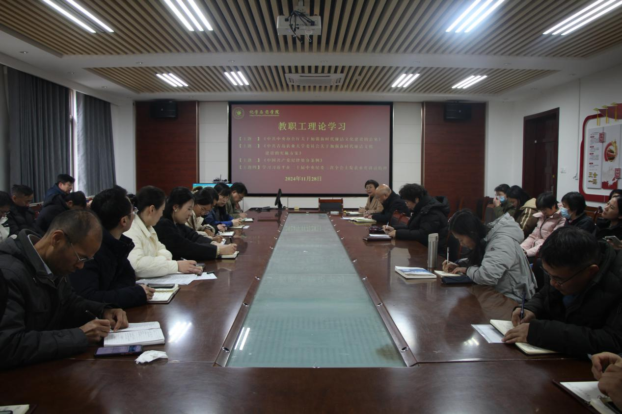 11月28日,青岛农业大学天天莫天天爽学生妹于化学楼207会议室开展教职工理论学习,全体教职工参加。