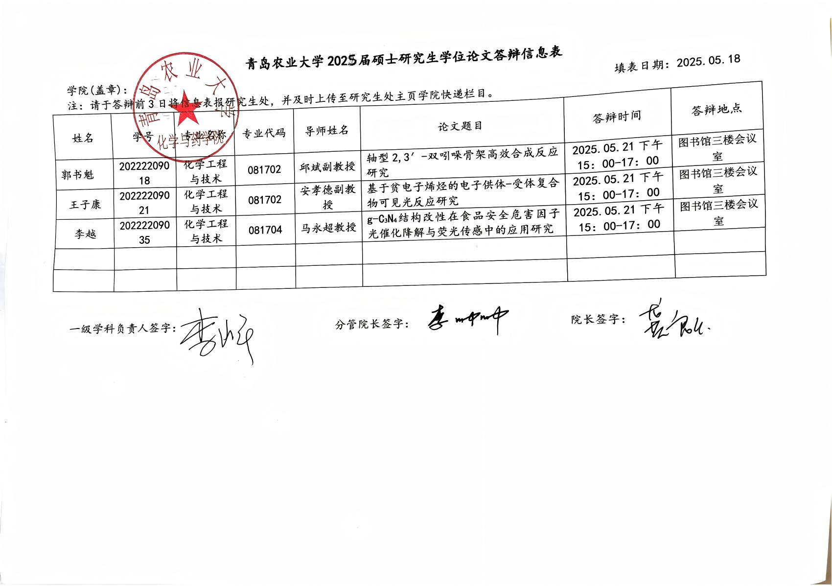 天天莫天天爽学生妹2025届研究生答辩信息-2