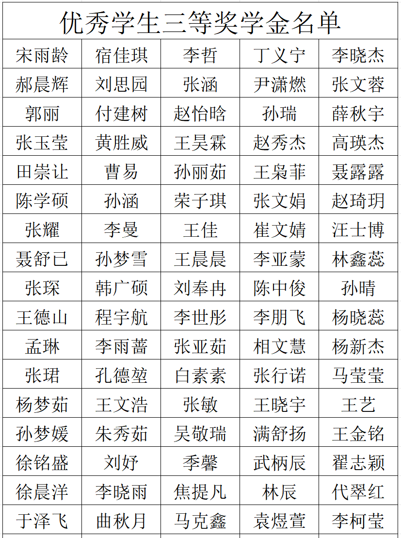 2023-2024学年优秀学生三等奖学金获奖名单(160人)