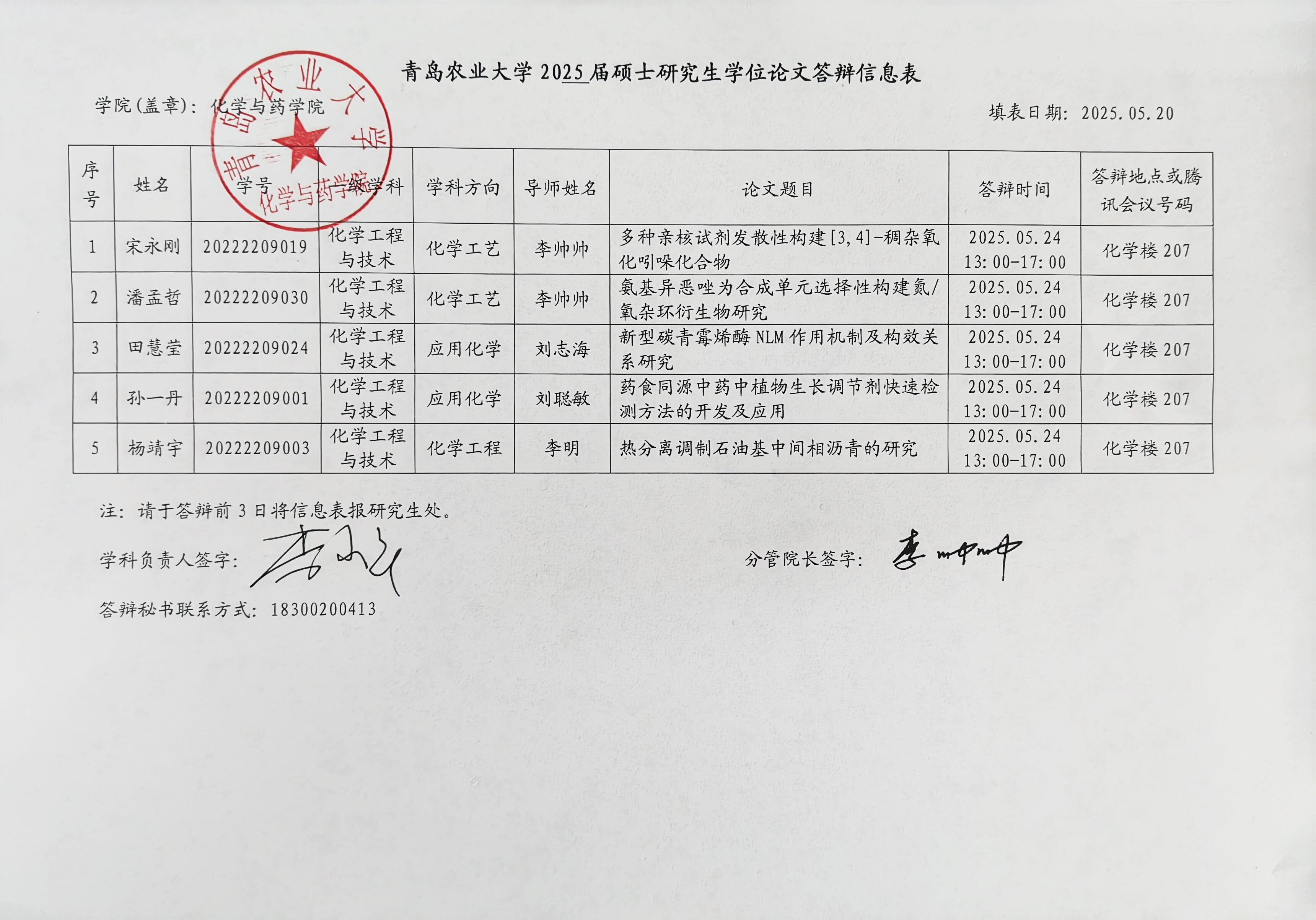 天天莫天天爽学生妹2025届研究生答辩信息-2