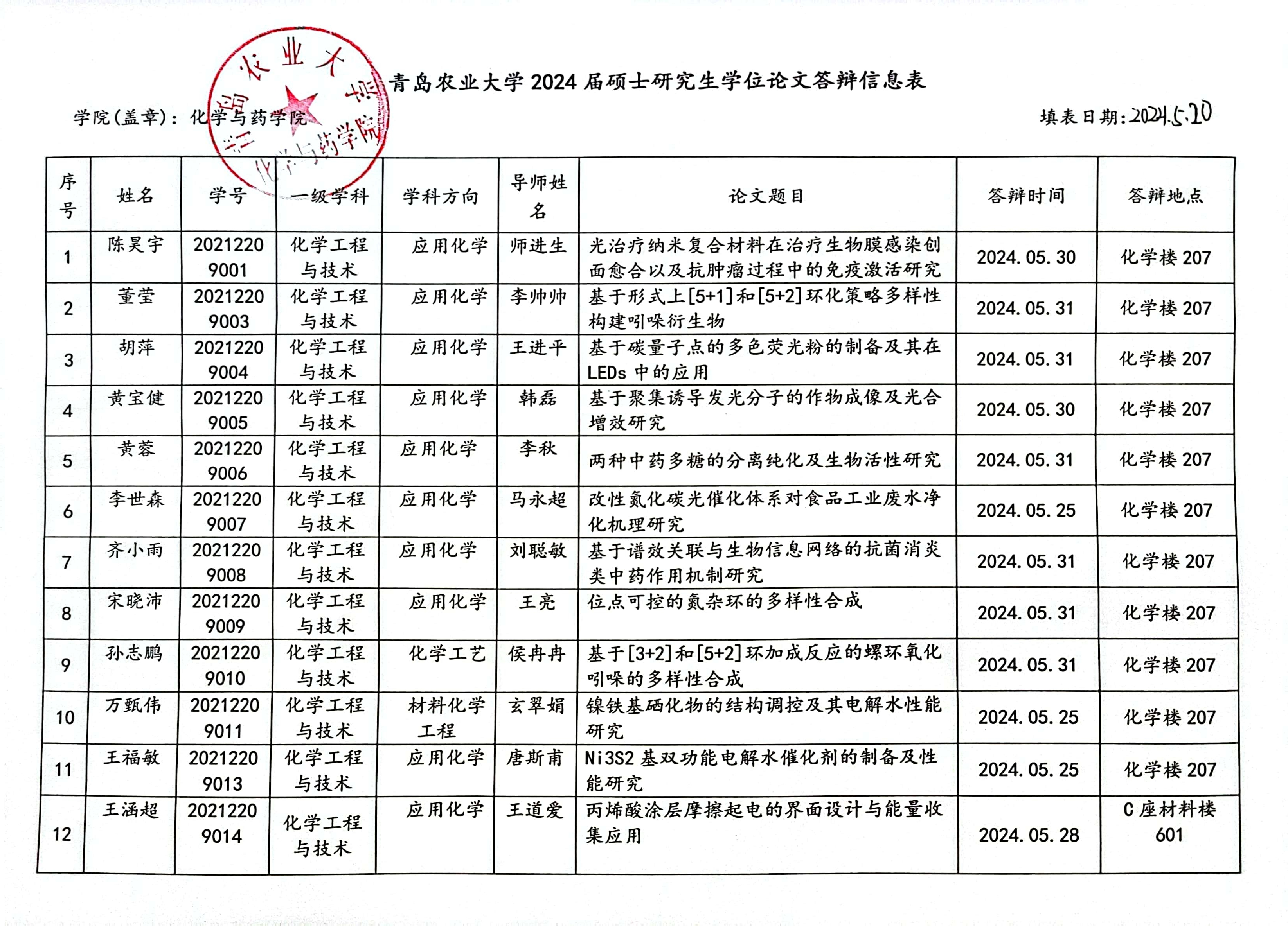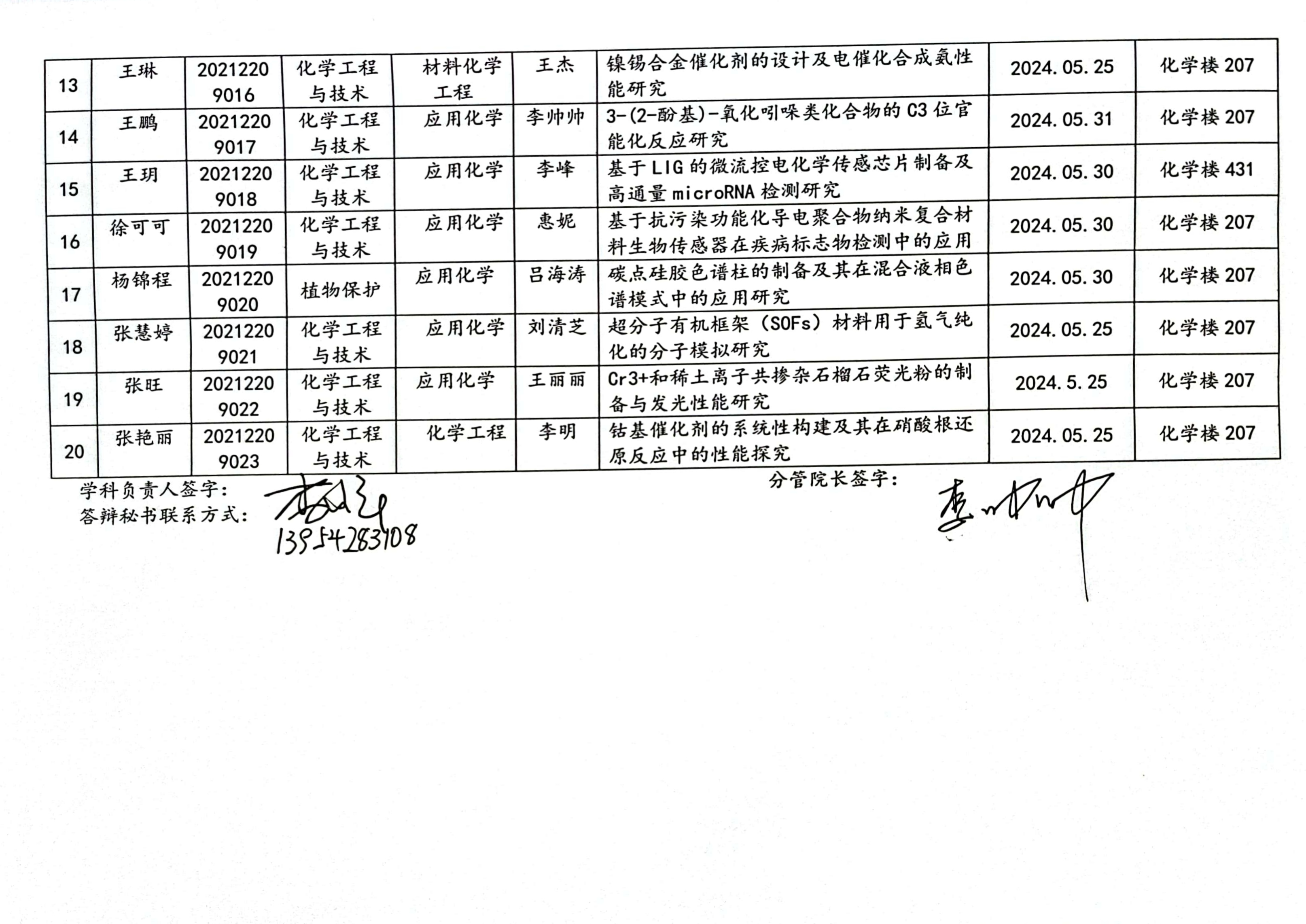 天天莫天天爽学生妹2024届硕士研究生答辩信息