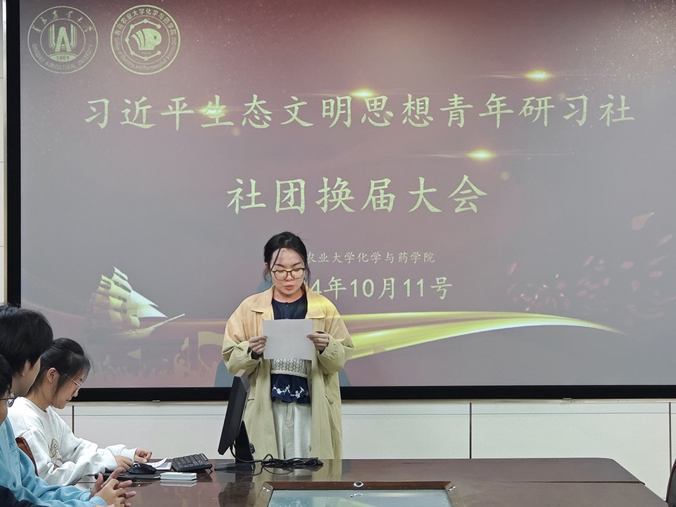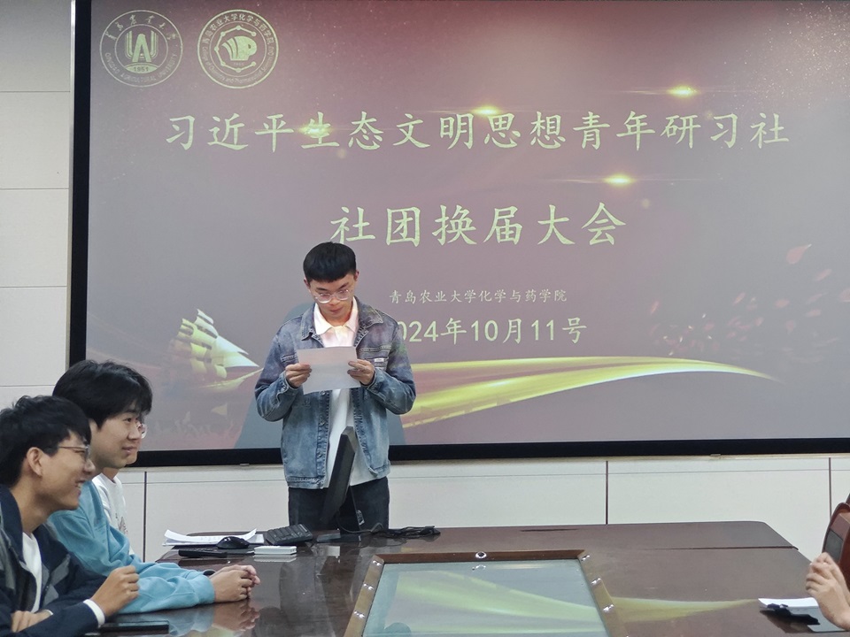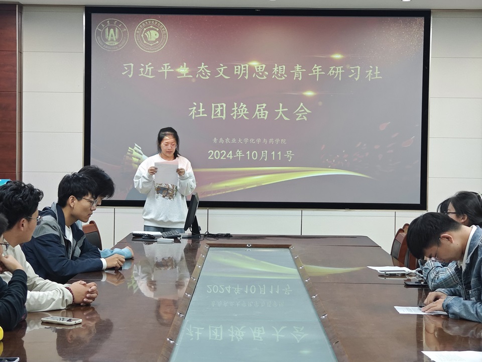 10月11日,在天天莫天天爽学生妹的化学楼207会议室,习近平生态文明思想青年研习社举行了换届选举大会。全体社团成员出席。