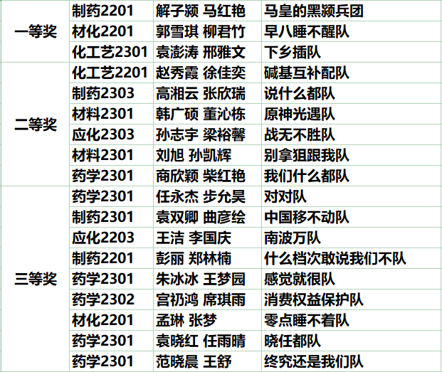 经过两轮激烈竞争,最终决出了18支获奖队伍,包括一等奖3队、二等奖6队和三等奖9队。具体名单如下图所示: