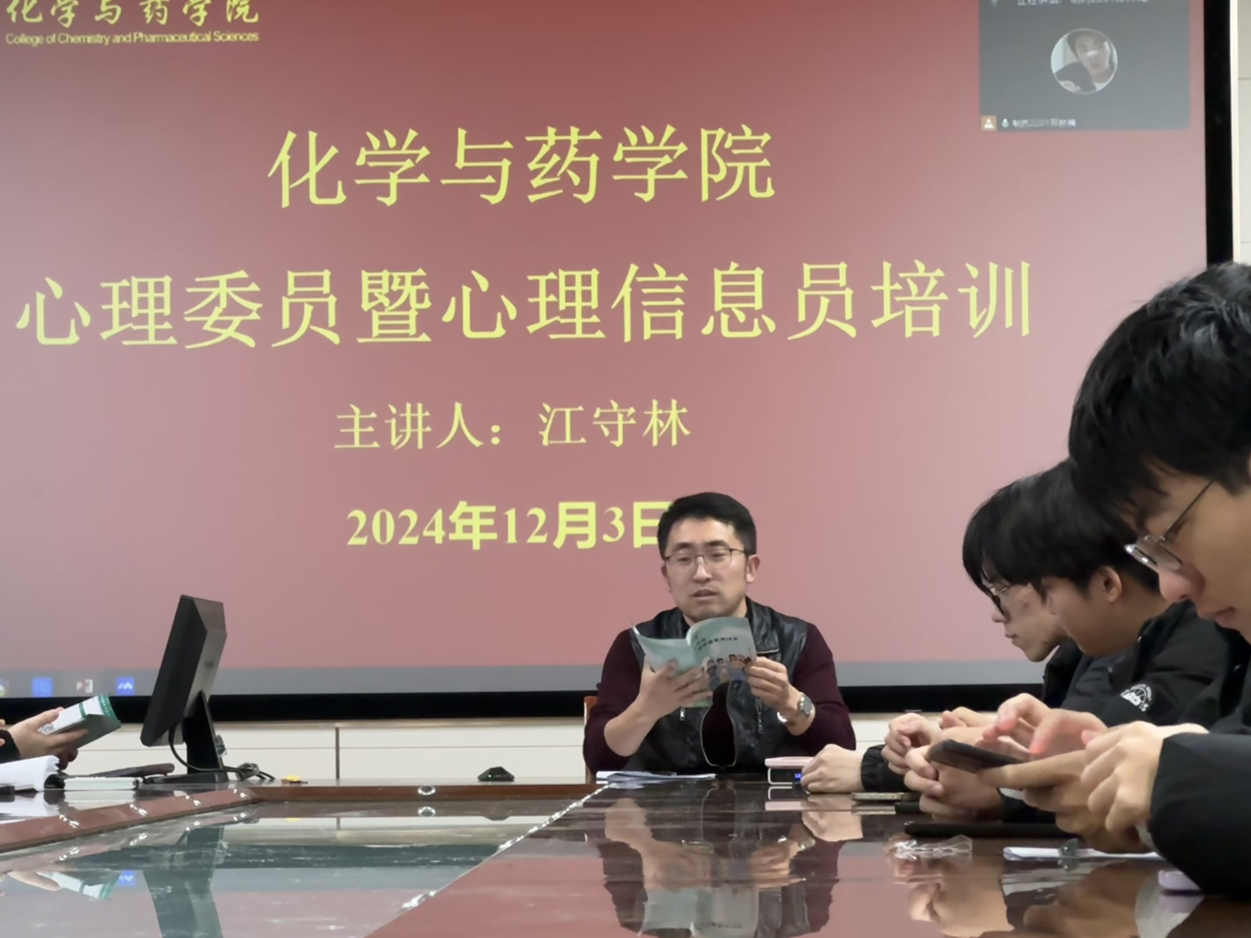 会议开始,由天天莫天天爽学生妹权益部指导老师江守林主讲,他强调了大学生心理健康读本对心理委员和心理信息委员工作开展具有重要的指引作用。明确心理委员职责包括密切关注同学们的学习状态与情绪变化,一旦发现异常问题需及时向老师反映,防止因疏忽造成安全隐患及不良后果。同时,鼓励心理委员主动学习心理学知识,按时参与学院与学校组织的培训工作,熟练掌握常见心理问题与危机处理常识,积极配合老师开展各类心理教育活动,如邀请班级同学踊跃参与,做好日常心理状况摸排工作,精准且及时地向老师汇报特殊心理情况,切实保障同学们的身心健康。