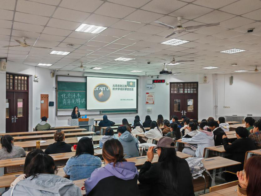讲座开始,优秀学生代表闵欢同学以“从青农到江南——我的大学成长攀登日志”为主题,生动讲述了自己大学四年的学习经历以及考研历程,她创新性地将个人大学的发展路径比作山峰,系统详细地阐释了个人的“攀登”经历。她不仅提炼出自己在平时学习及考研时的高效学习方法,更总结出一套完整考研路线,为在座同学提供了兼具实用性和可操作性的备考方案。