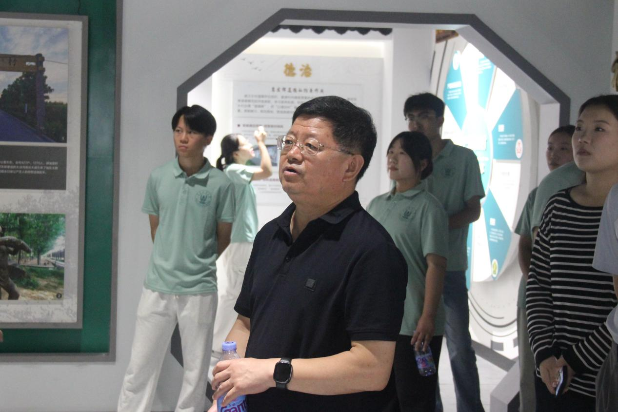 伴随着实践团队长于博清的讲解,学院老师们与实践团成员怀揣着对产芝湖新村优秀传统乡土文化的虔敬之心走进产芝村史馆。通过详实的展览内容,师生们深入了解到水集街道和群众是如何践行“莱西会议”精神,秉持着“唯旗是夺,事争一流”的干事态度,将人文底蕴与发展成果有机融合,创新推动产芝片区村庄联动发展,打造出一条集农业观光、民俗体验、休闲娱乐于一体的特色旅游带。馆内陈列的一件件实物、一张张照片都让师生们深刻感受到这片土地的发展脉搏,都体现了习近平总书记所强调的“农村强、农村美、农民富”是提升农民获得感、幸福感的关键所在,也是衡量全面建成小康社会和社会主义现代化建设成效的重要标尺。