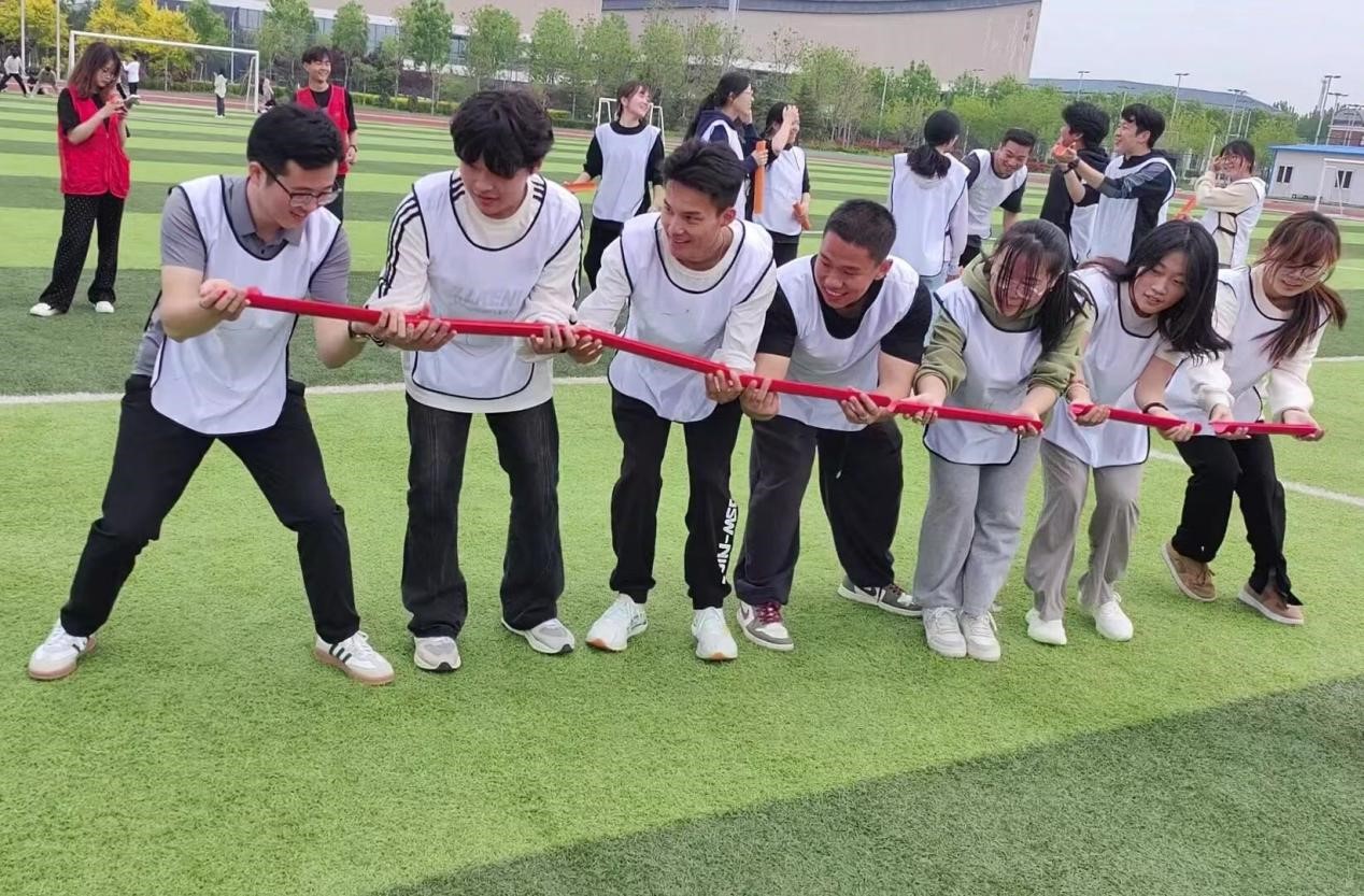开幕式上,精彩的文艺表演为活动拉开序幕,展现了学生们的青春与才华。随后,校党委委员、副校长田义轲发表了重要讲话,强调了心理健康的重要性,并对本次心理文化节寄予期待。学院在城阳和平度校区各有两支代表队,分别由学院团委书记赵莹、辅导员江守林、李鑫、胡勋涛和徐赞作为教师代表带队。校区内设跑步路线,线上设8个关卡,各个队伍按抽签顺序到各关卡打卡,包括粘土DIY,“烦恼”拜拜,企鹅漫步,两人三足等,每完成一个关卡,参赛队员就会获得“阳光笑脸”的一笔色彩,通过8个关卡即可获得一个完成的笑脸图案。经过参赛师生的默契配合,最终顺利完成全部关卡项目,学院师生身着统一服装,在顺利通过一层层关卡后衣服变得更加五彩斑斓,同学们感受着色彩与快乐带来的心灵愉悦。本次活动中,城阳校区的“心理知识问答”环节由我院承办,学生志愿者们按照学校要求积极组织,策划出题,顺利完成了该关卡的环节设置安排。