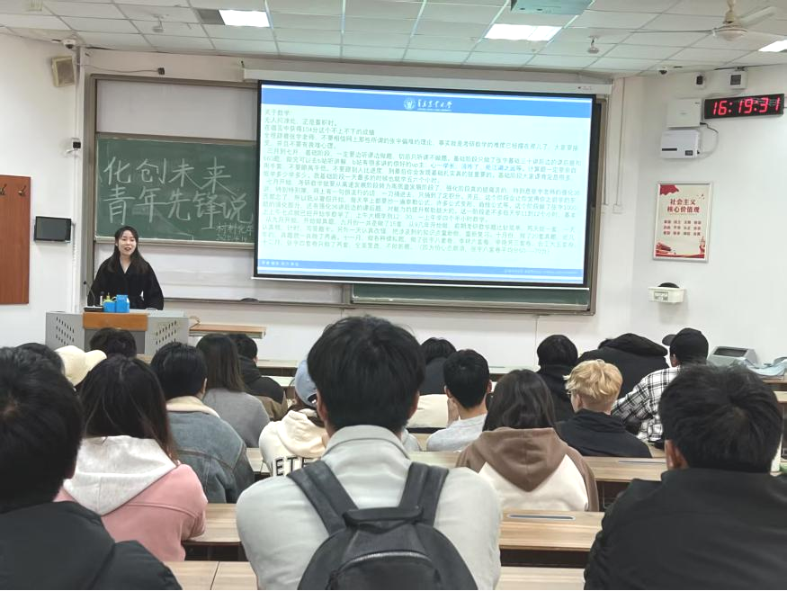 为激发学生创新思维,赋能青年学子将科研探索与创新实践相结合,4月14日下午,第二场“化创未来·青年先锋说”宣讲活动于教学楼B203成功举办,本场活动邀请到材料化学2101班张晶、材料化学2102班张峥和材料化学2102班于超杰三位优秀学生代表,分享各自独到的创新创业与考研备考经验。内容充实,贴近实际。