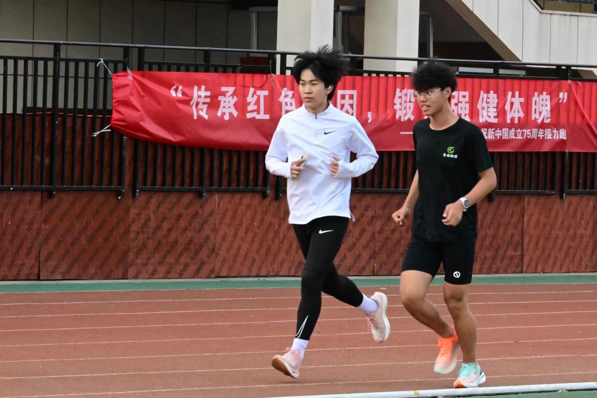 8时30分,总距离75公里的接力跑伴随着发令枪响拉开帷幕,体育场上,少年们踏着铿锵的脚步,秉持着“少年负壮气,奋烈自有时”的拼搏精神,接力传递对祖国的祝福,每一棒的交接都传递着力量与希望。经过6小时的接力奔跑, 75公里接力跑活动圆满完成。化药学子用自强不息、刚健有为的精神风貌庆祝祖国华诞,展现出奋力拼搏、追求卓越的青春底色和赤子之心,更体现出爱国主义精神与体育强国建设的紧密结合,充分践行了“请党放心,强国有我”的青春誓言,弘扬了团结合作、奋力拼搏的体育精神,推动学院文化与体育建设融合发展。
