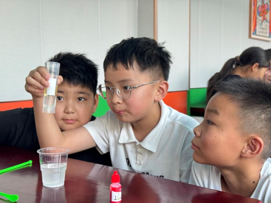 支教期间,团队紧紧围绕“化学知识传播,五育并举育人”的核心,创新打造了一系列特色课程。他们充分发挥“锌”火相传小小化学家社团特色,坚持每日至少举办一场化学趣味实验:“火焰掌”炫酷的燃烧现象与消防知识讲解紧密结合,寓教于乐;“维C密信”以孩子们喜爱的动漫为引,生动揭示了化学的奥秘,令孩子们惊叹连连。