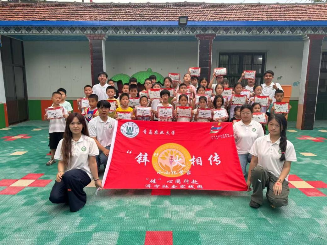 这些丰富多彩的活动,不仅极大地唤起了孩子们对化学和科学的浓厚兴趣与探索热情,更有效培养了他们的动手实践能力与创新思维。本次实践聚焦乡村教育帮扶,充分发挥我院学科专业优势,通过精心设计的科普课程与实践活动,致力于为深山学子拓宽视野、点燃科学梦想,以实际行动为当地乡村教育注入青春活力。临别之际,团队向梁山县各级政府、韩岗镇村委会、西大屯村小学及全体村民致以最诚挚的谢意,感恩其全程的倾力支持与信任托付,更向每一位纯真坚韧的学子深深祝福。