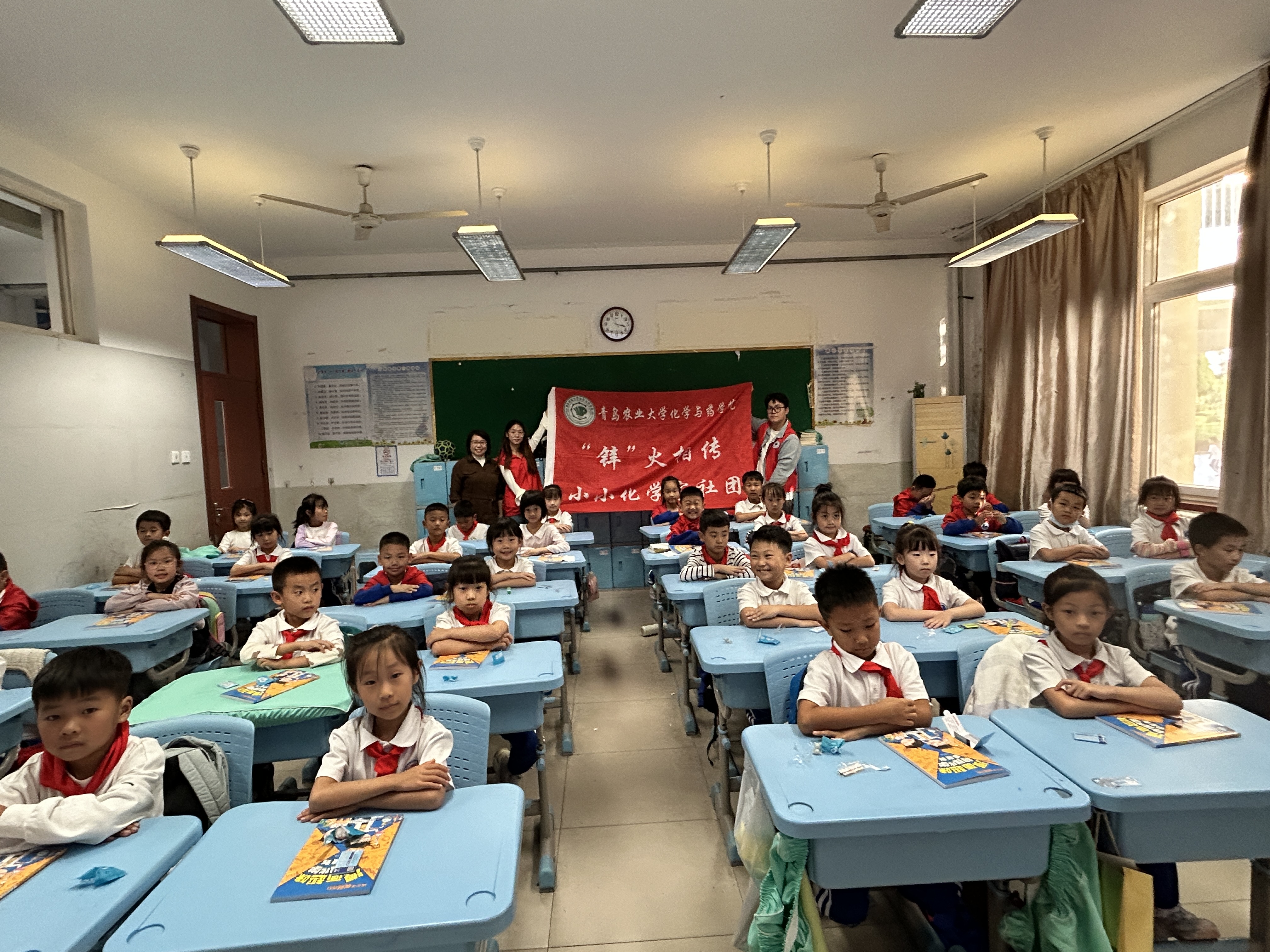 10月11日,青岛农业大学“锌”火相传小小化学家社团走进城阳第三小学,为该校约40名学生带来了一场别开生面的化学科普活动,旨在激发孩子们对化学的兴趣,引导他们初步走进并了解这个神奇的科学领域。
