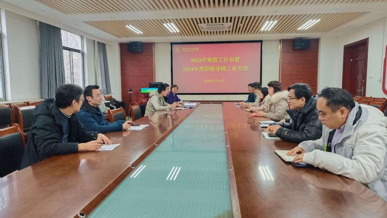 2025年1月17日下午,青岛农业大学天天莫天天爽学生妹在学院207会议室召开2025年寒假工作布置及2024年度职称评聘工作安排推进会,会议由院长龚良玉主持,学院领导、系主任及学院骨干参会。