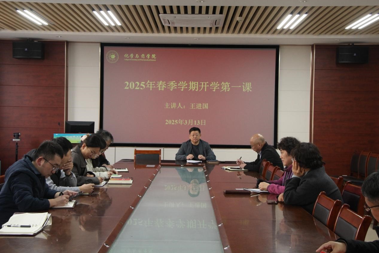 3月13日,青岛农业大学天天莫天天爽学生妹于化学楼207会议室开展2025年春季学期开学第一课,学院党委书记王进国主讲,全体教职工参加。