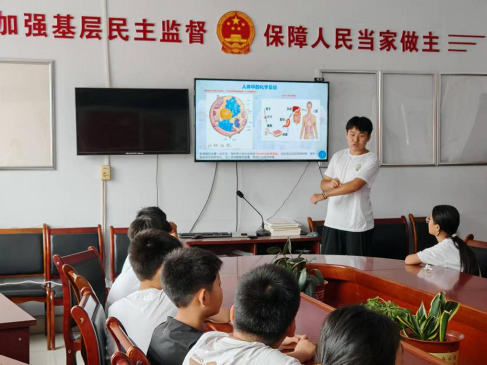 7月20日,“锌”火相传小小化学家赴菏泽东明县大屯镇实践服务团开展“三下乡”支教活动。实践服务团开设趣味化学课程,通过生活化实验演示,激发乡村儿童科学兴趣。此外,团队特别建立家校协同机制,进一步促进当地家校联动,助力乡村儿童全面发展。团队成员还结合当地种田需求,走进田间地头,为农户讲解化肥、农药的科学使用技巧,指导农户合理种田,助力提升当地农业生产效率。