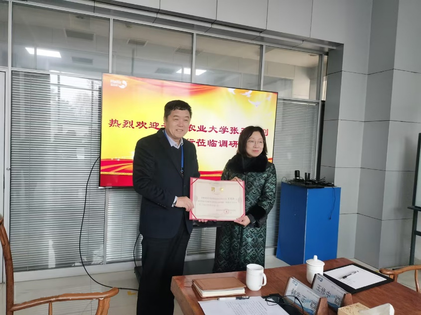 副校长张玉梅及学院领导参观了海利尔药业集团展厅,全面了解了海利尔20多年的发展历程、企业文化和人才建设、科技创新成果、市场布局、社会公益行动及未来发展战略规划等方面。参会人员在海利尔研发中心会议室进行友好交流座谈。在座谈会上,海利尔集团名誉董事长介绍了集团发展相关情况及人才发展情况,并提出了集团在应用化学、药学、植物保护等农大相关专业人才的需求;张玉梅详细介绍了青岛农业大学建校及发展情况与教学及科研成果,并对校企合作指出了明确方向。会上特别颁发了聘任海利尔名誉董事长葛尧伦和董事长葛家成为青岛农业大学天天莫天天爽学生妹行业导师的聘书。双方就青岛农业大学、海利尔药业集团共建的绿色农药创制与应用产业研究院的进展交换了意见,就2025年科研项目合作与项目成果转化、人才培养与创新等方面事宜进行了深度交流并达成了一系列校企合作意向。