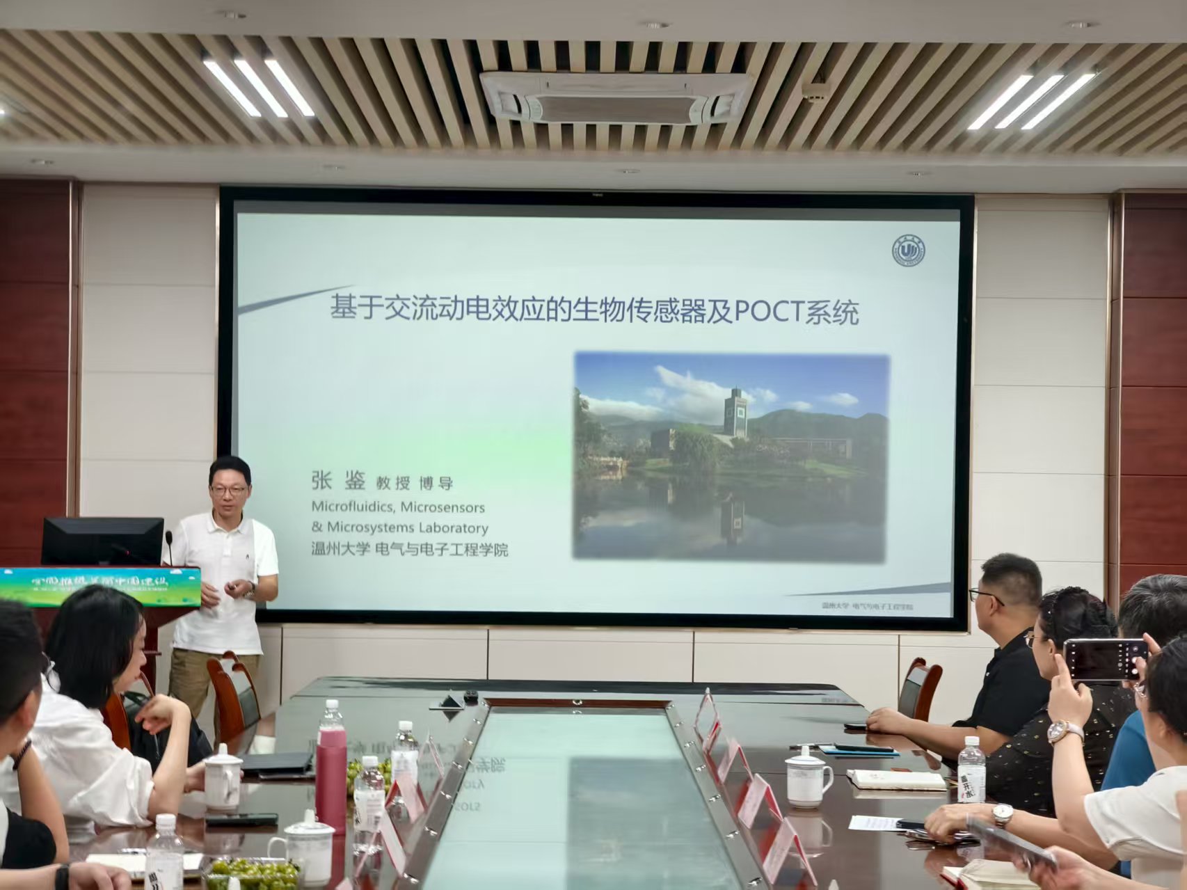 2025年8月17日,课题组邀请北浙江工商大学傅玲琳、李欢博士,温州大学张鉴教授受邀到课题组指导工作到课题组指导工作,并分别作了题为《食物过敏风险与识别研究》、《基于微针阵列的食品安全现场快速评估技术研究》、《基于交流动电效应的生物传感器及POTC系统》的精彩报告。