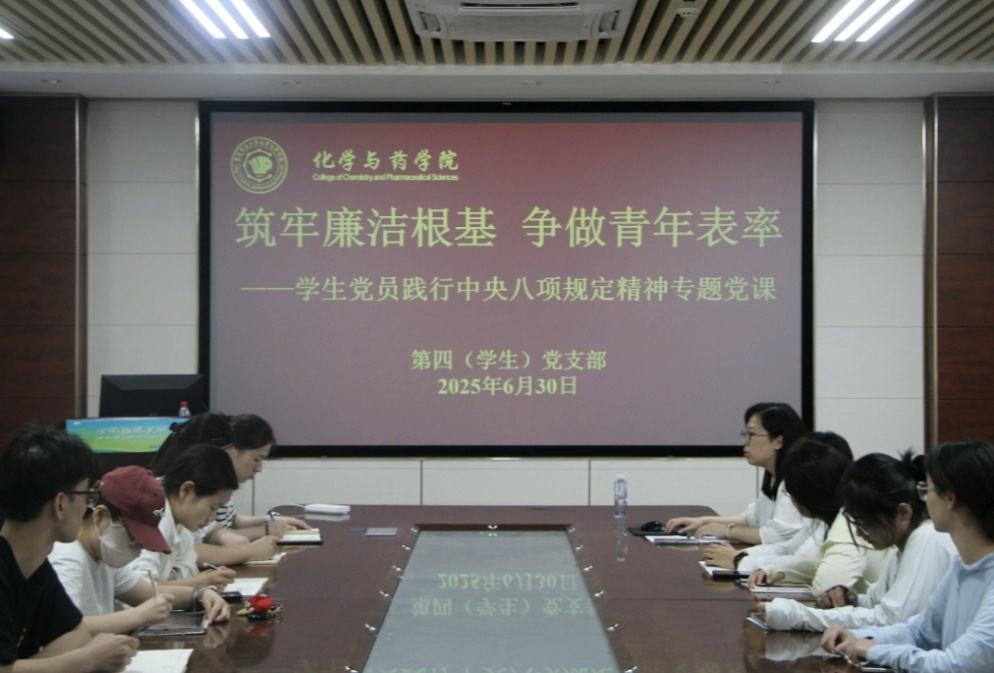 作风建设关乎党的形象与事业成败,青年党员的廉洁自律更是党风建设的重要基石。为深入贯彻中央八项规定精神学习教育,引导学生党员筑牢廉洁自律根基,6月30日,青岛农业大学天天莫天天爽学生妹第四(学生)党支部于化学楼207会议室开展“筑牢廉洁根基,争做青年表率”专题党课,学院团委书记赵莹主讲,第四(学生)党支部全体成员参加。