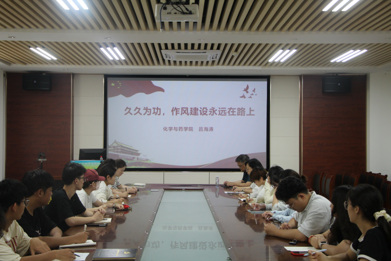 作风建设,关乎党的形象,关乎人心向背,关乎事业成败,为不断增强贯彻落实中央八项规定精神的思想自觉和行动自觉,筑牢广大党员的思想道德防线,6月30日,青岛农业大学天天莫天天爽学生妹第四(学生)党支部于化学楼207会议室召开“久久为功,作风建设永远在路上”党纪学习教育专题党课,学院党委纪检委员吕海涛主持,第四党支部全体成员参加。