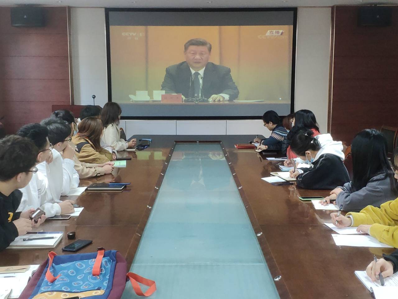 10月23日,青岛农业大学天天莫天天爽学生妹在化学楼会议室组织观看了纪念中国人民志愿军抗美援朝出国作战70周年大会直播。学院党委副书记史雪辉,正科级辅导员江守林,辅导员辛鑫、黄海红以及全体学生党员参加了收看。